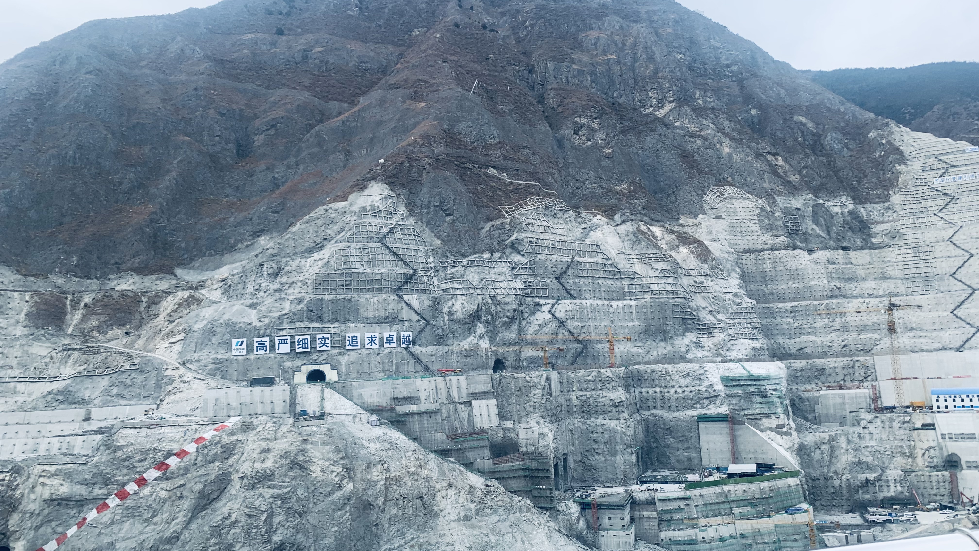 第一次進(jìn)入施工現(xiàn)場那天,總工程師的黃色安全帽上沾著新鮮泥點,像枚勛章斜扣在鬢角間。激光筆的紅斑在沙盤模型上游走時,我看見他手背凸起的血管虬結(jié)成金沙江支流,隨講解節(jié)奏在皮膚下奔涌:“導(dǎo)流洞施工已突破關(guān)鍵巖層,日澆筑量達(dá)到5000立方米......”紅點突然凝滯在碾壓混凝土重力壩的剖面結(jié)構(gòu)上,握著激光筆的指節(jié)泛起青白。